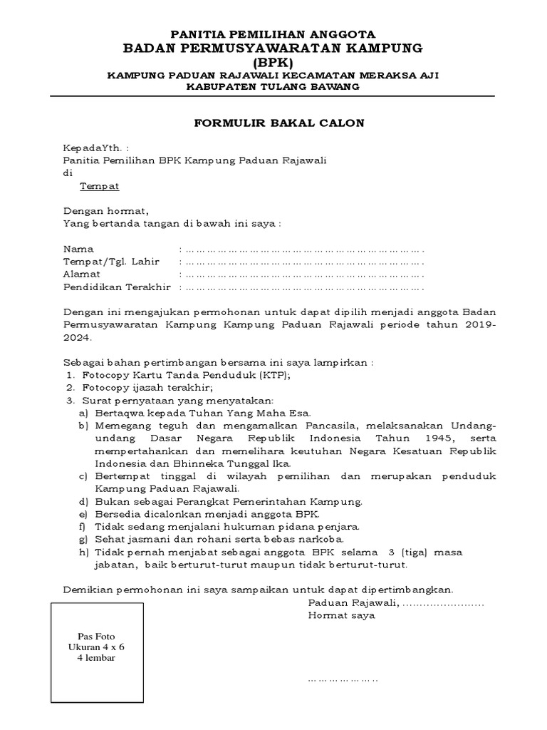 Formulir Pendaftaran Calon Anggota Bpd from imgv2-1-f.scribdassets.com Contoh formulir registrasi calon pengurus osis smp pilpay. Atau anggota partai politik, ketua atau anggota bpd, pengurus atau anggota lembaga kemasyarakatan. Download surat keterangan mematuhi tata tertib dan surat keterangan bebas narkoba disini. Kami mengundang anda profesional muda untuk bergabung bersama kami dan. Pengumuman peserta yang sudah verifikasi administrasi. Sma calon peserta didik jalur perpindahan orangtua. 30 downloads 521 views 37kb size. Download formulir pendaftaran paud tk kb tpa sps.